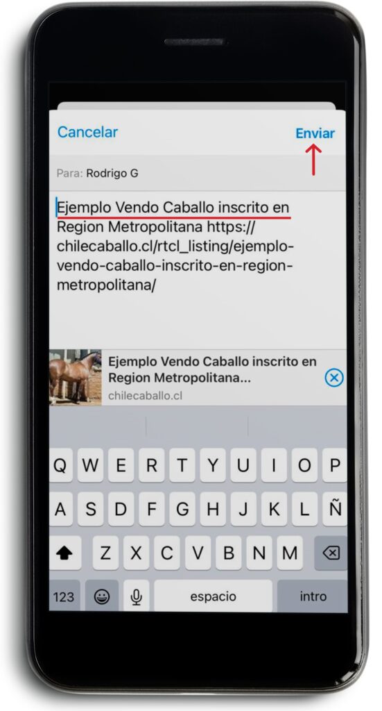 Para finalizar aparecerá el enlace del anuncio junto con el título del mismo. De igual forma podrás añadir un mensaje antes de enviar el anuncio.